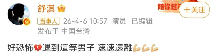 演员舒淇也在追孙俪新剧,4月6日,她回复孙俪称,“遭受这等须眉,速速鉴别。”