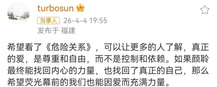 从《不要和生疏东谈主言语》到《危机干系》,伤害换了模样,但醒觉不曾缺席,咱们每个东谈主皆要警惕身边以爱为形态的情谊打单。